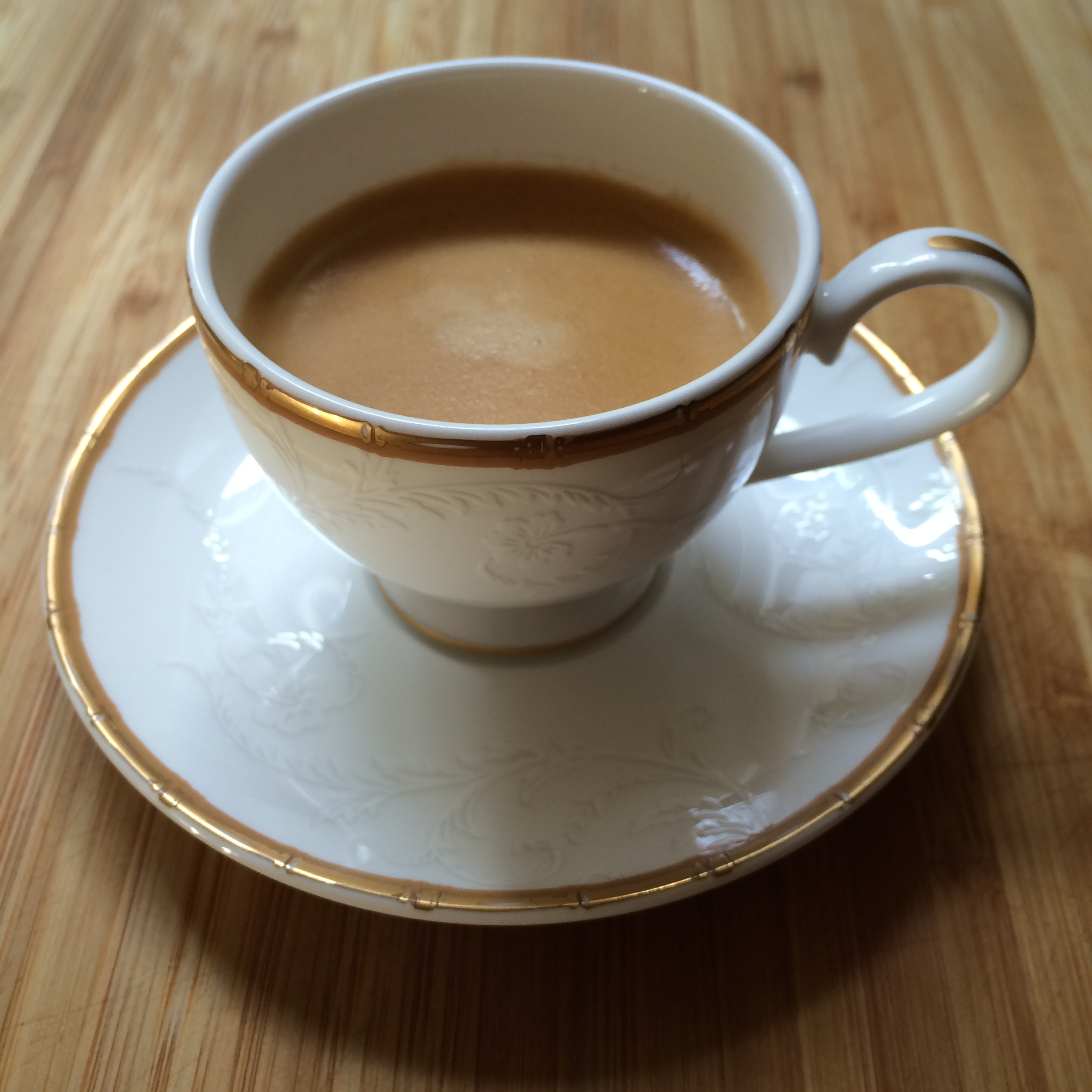 This morning’s espresso is the Ciocattino from Nespresso – so a little hint of chocolate to it – seems rather apt for the Georgian style cup. It is rich and delicious, rather like George Clooney himself, who is sadly missing from my breakfast table this morning.